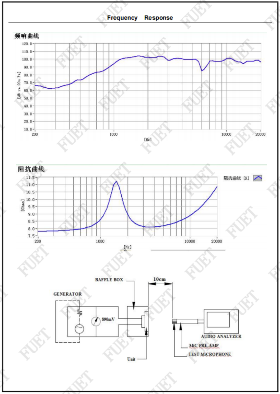 阻抗 | 8.0Ω±15% | At 3000Hz 1.0Vrms |